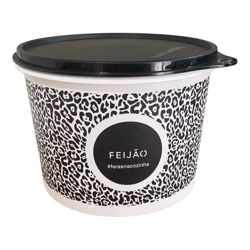 A Tupperware Caixa Feijão Feras na Cozinha 2kg é o mais novo lançamento da Tupperware. Com uma decoração preta e branca que apresenta diversos detalhes relacionados à cozinha e ao feijão, esta peça tem capacidade para 2kg, permitindo que você armazene dois pacotes de feijão com segurança e conservando-o por muito mais tempo graças à sua tampa hermética. Garanta já a sua caixa!