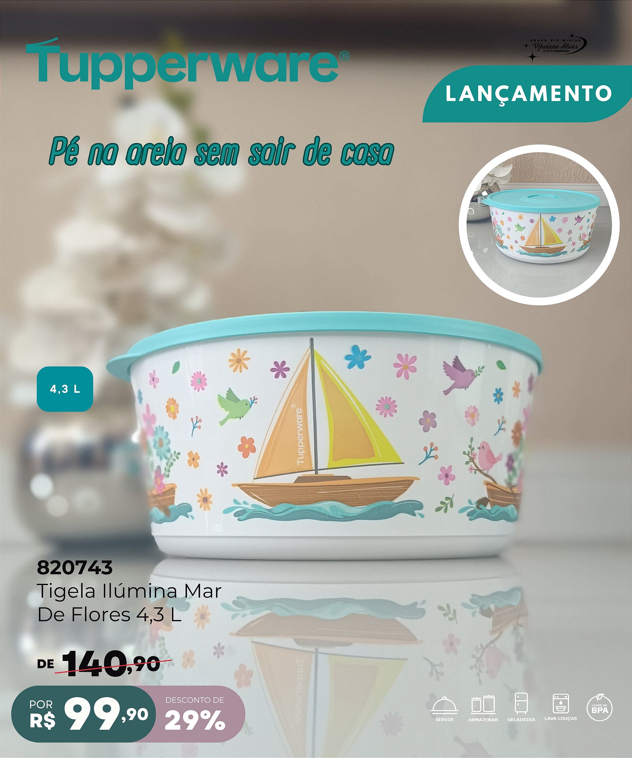 A Tupperware Tigela Ilúmina 4,3 Litros Mar de Flores é perfeita para armazenar, preparar e servir grandes porções com praticidade e elegância. Seu design moderno e acabamento vibrante em vermelho fazem dela um item indispensável na cozinha e à mesa. A tampa com vedação segura mantém o frescor dos alimentos, e sua capacidade generosa é ideal para massas, saladas ou receitas especiais.